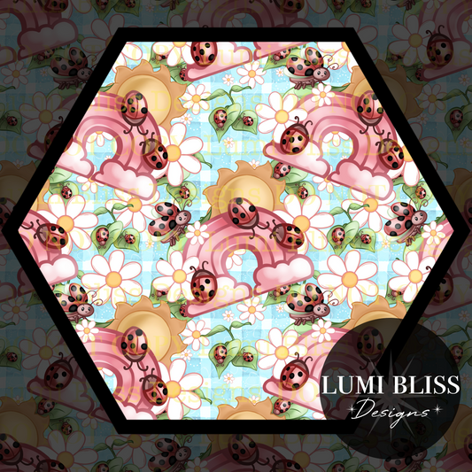 Spring Ladybugs Blue Seamless