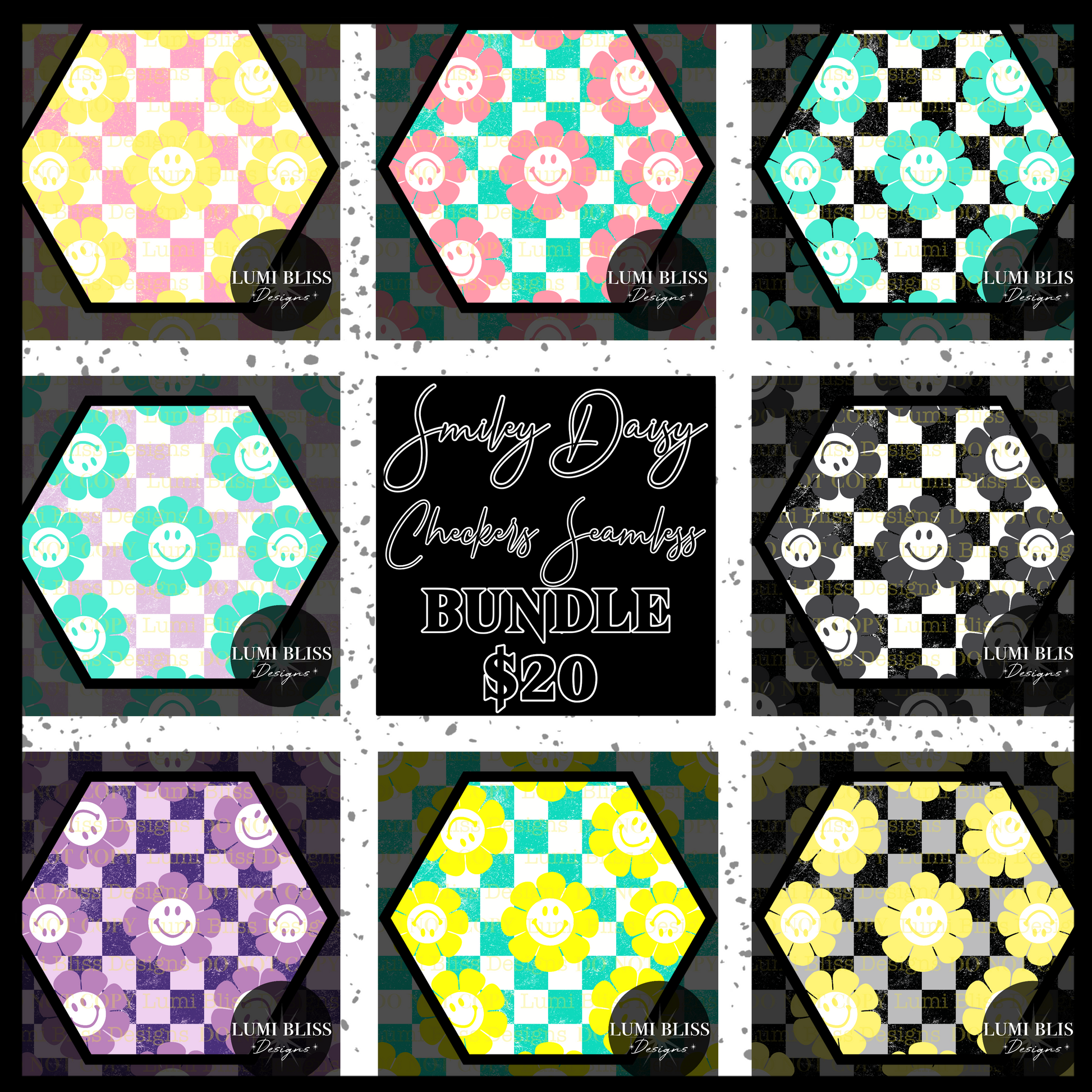 Smiley Daisy Checkers Seamless Bundle